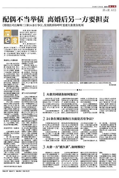 后来的司法实践中,个别法院的法官往往以这一条为裁决依据,一些人需要为他们的前夫(前妻)的债务“买单”。