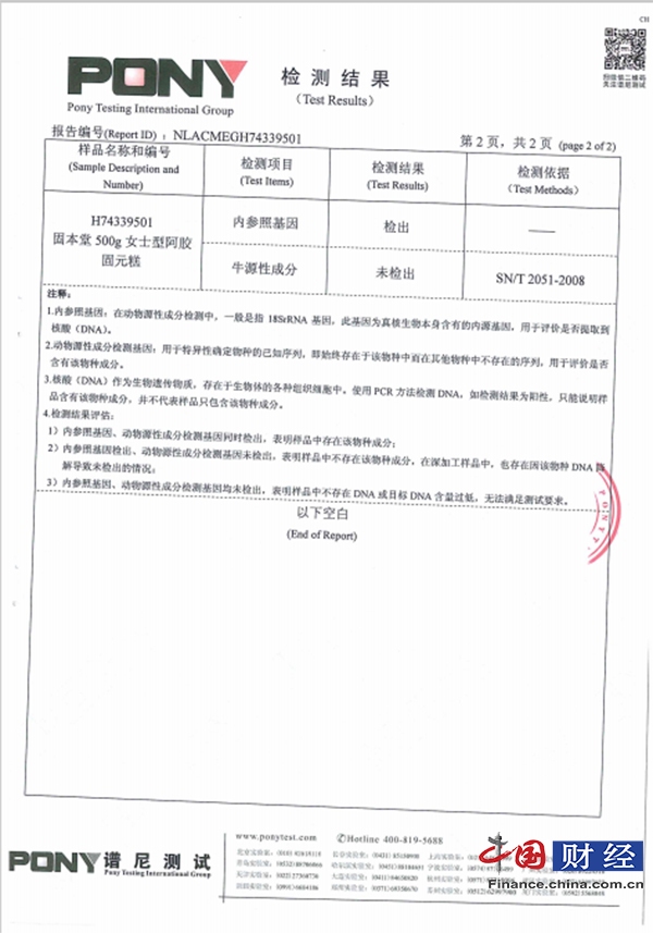 而另一方面,济南固本堂则称,吴先生的投诉系竞争对手的恶意商业竞争,目前已将侵权人吴先生诉至济南市平阴县人民法院,依法追究其名誉侵权责任。同时,济南固本堂也将产品合格的检测报告和未检测出牛皮源的报告发给了天猫超市。