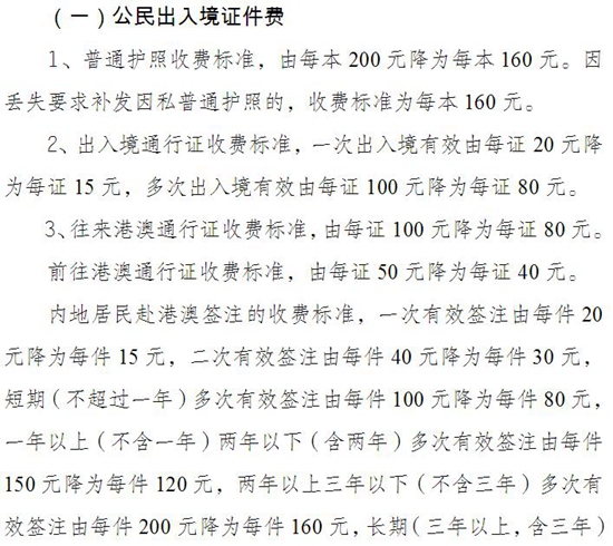 7月起多项收费标准降低 办理普通护照少收40元(表)