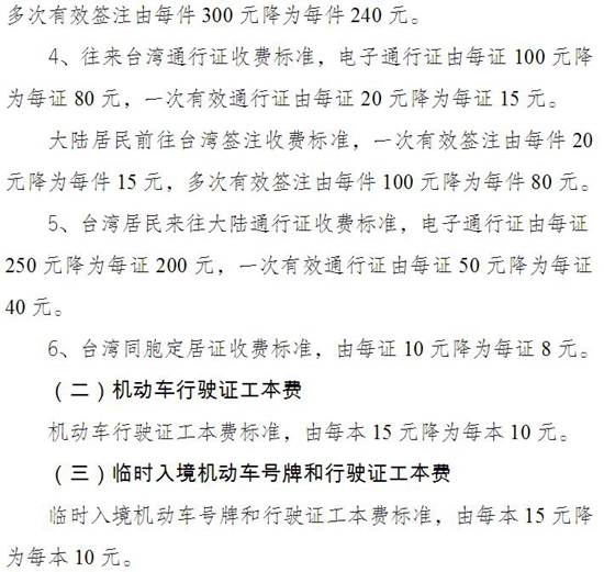 《通知》规定,自2017年7月1日起,降低电信网码号资源占用费、频率占用费、公民出入境证件费、机动车行驶证工本费、临时入境机动车号牌和行驶证工本费、水土保持补偿费、农药实(试)验费、集成电路布图设计保护费等收费标准。