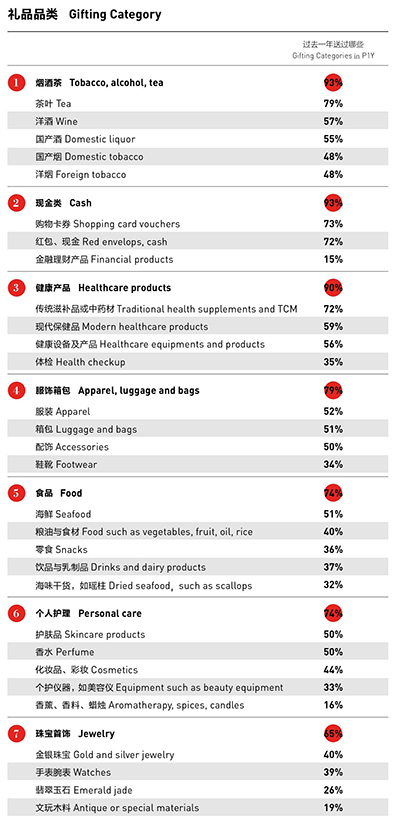 二、现金类、烟酒茶和健康产品是最常送的三个赠礼品类