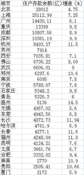 需要说明的是,由于部分重点城市如天津、沈阳、济南、大连等城市的住户存款数据对外公开部分搜集不能齐全,在此没有一并纳入统计。