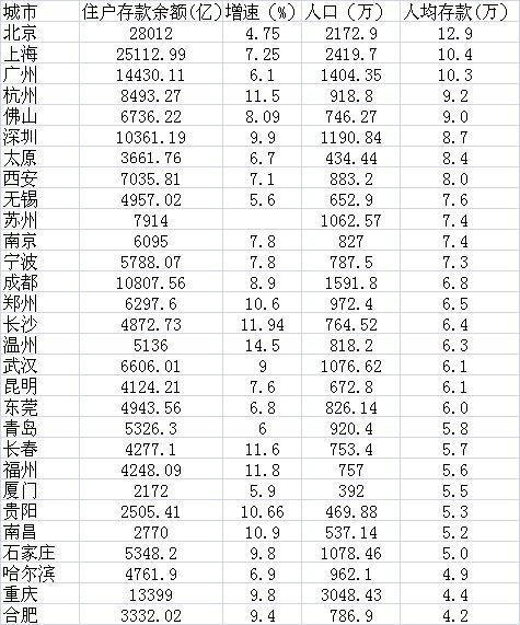 哪里居民存款多:北上广人均存款超10万 你拖后腿了吗?