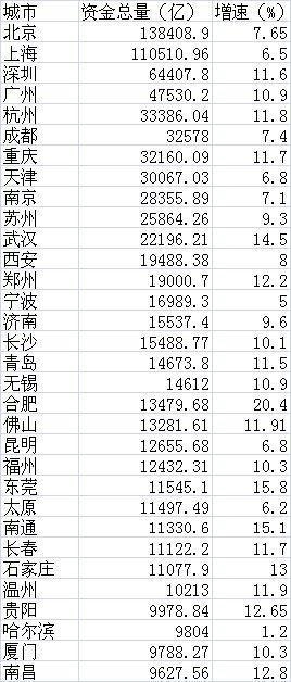 数据来源:资金总量为各城市“金融机构各项存款余额”