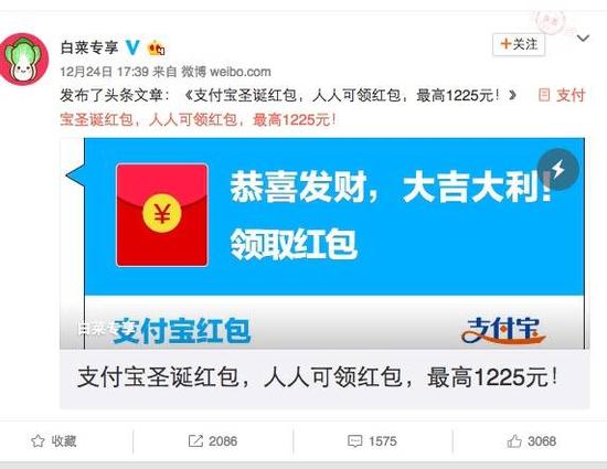 支付宝向我透露,一些微博大V和自媒体也都通过自己的渠道对支付宝的这次红包活动进行了自发转发,甚至一些地方媒体的报纸在显眼的位置进行了报道,并附上二维码,这样他们就可以直接创造收入。