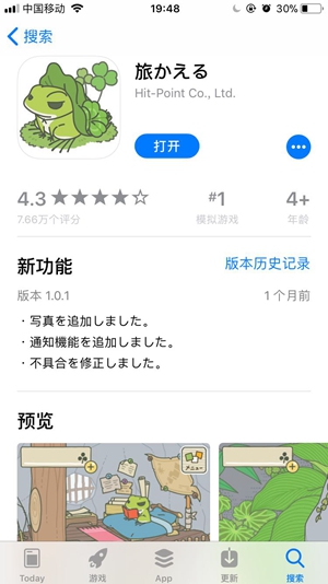 随着“云养蛙”蔚然成风,几乎就在十来天的时间里,纯日语界面的日本手游《青蛙旅行》(旅かえる)就攻陷了朋友圈,同时登顶苹果应用商店免费游戏排行榜第一位。