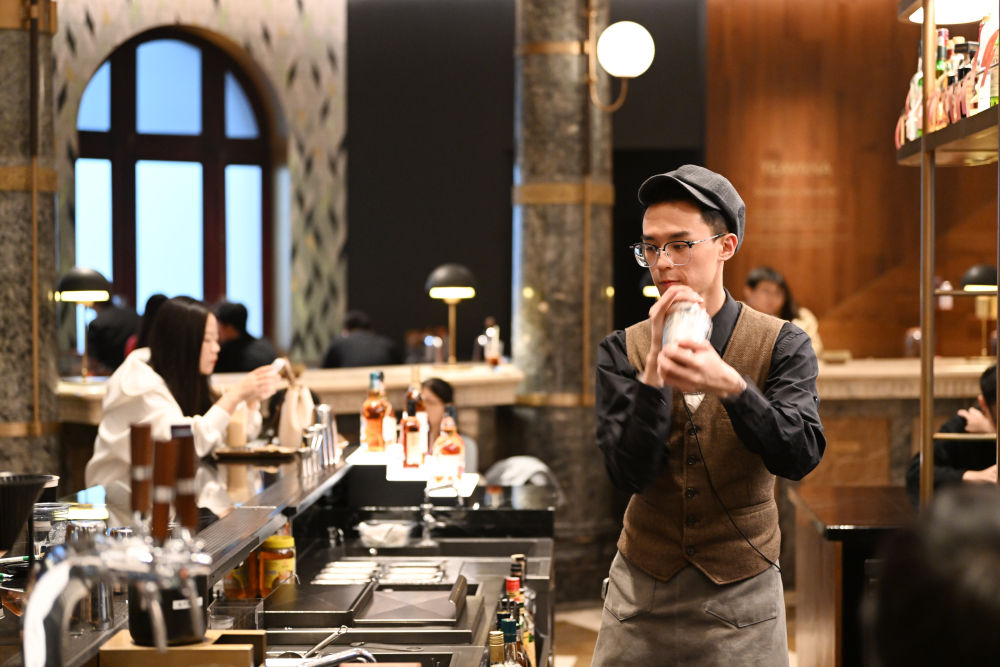 咖啡师在天津金街的星巴克制作饮品(10月13日摄)。