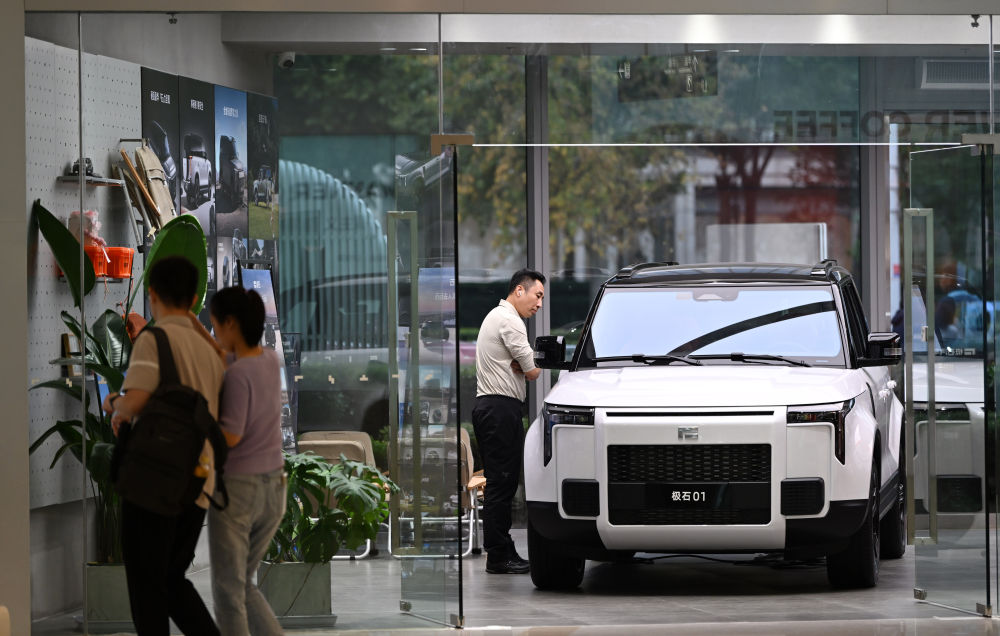 这是一家销售新能源汽车的店铺开在天津金街的商场内(10月13日摄)。