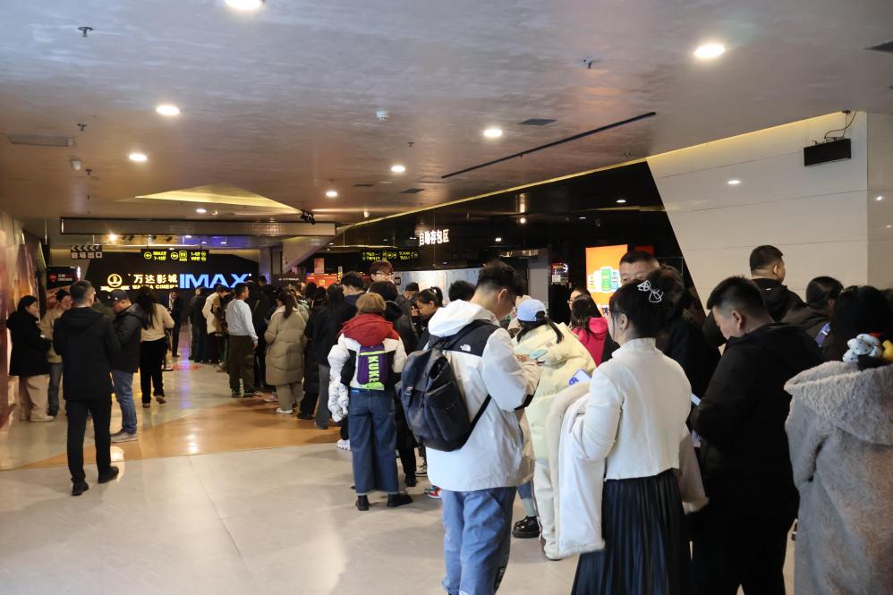 哈东万达影城“跟着电影去旅行”活动现场,观众排队观影。新华社记者 姜思妮 摄