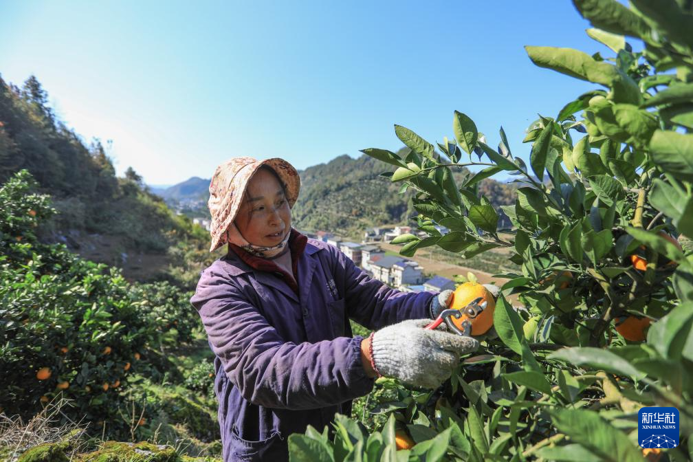 11月19日,在重庆市秀山土家族苗族自治县洪安镇贵措社区,果农在采摘脐橙。
