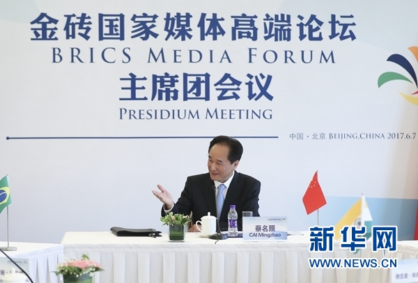 6月7日,金砖国家媒体高端论坛主席团会议在北京举行,论坛执行主席、新华社社长蔡名照主持会议。新华社记者 谢环驰 摄