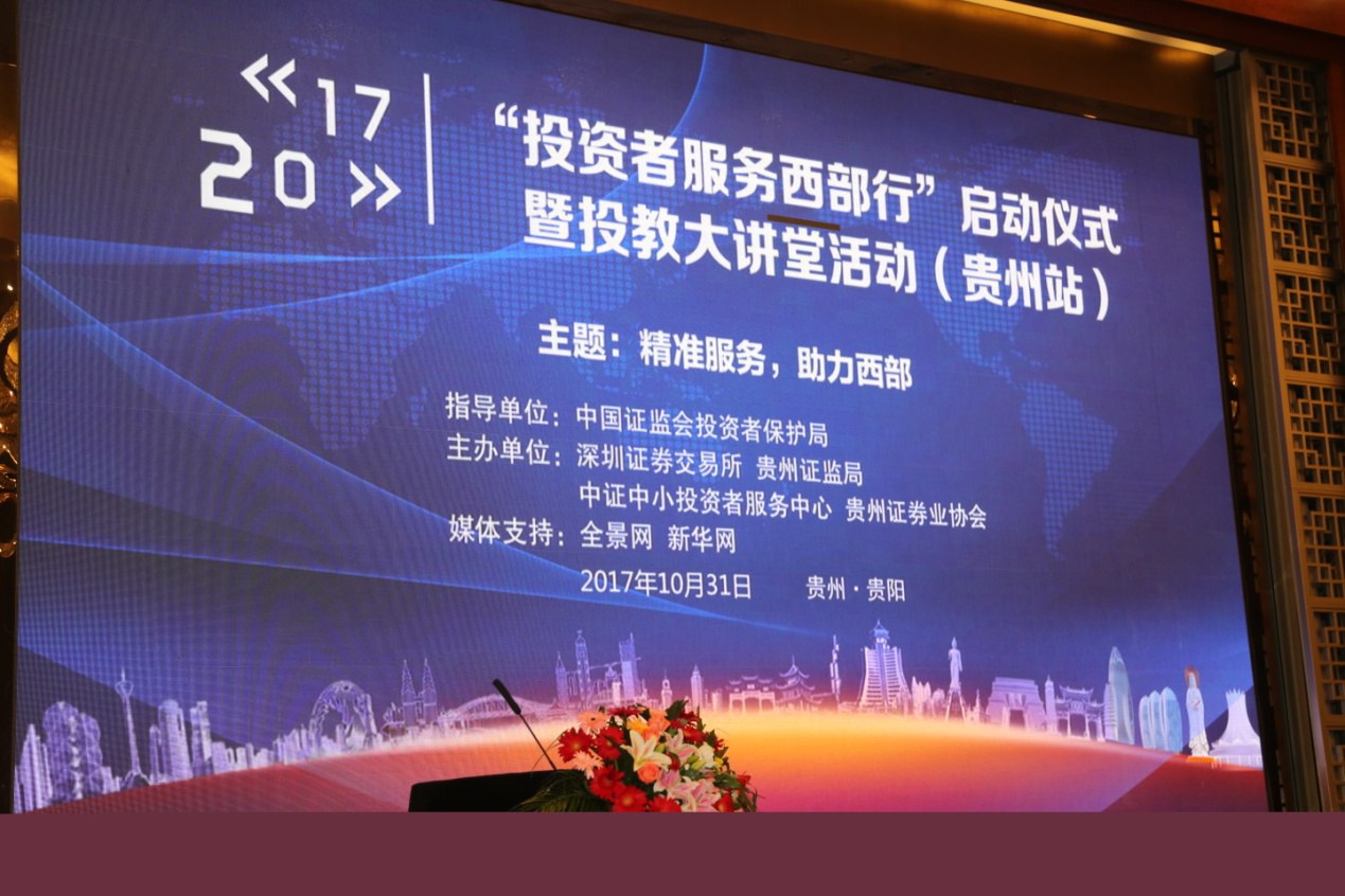 由深圳证券交易所、贵州证监局、中证中小投资者服务中心、贵州证券业协会主办的“投资者服务西部行”启动仪式暨投教大讲堂活动(贵州站)今天(2017年10月31日)在贵阳举行。