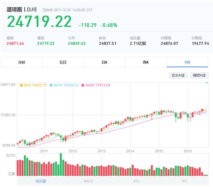 回顾2017年,沪指及深指年内涨幅不到10%,而另一边,美国三大股指却屡创新高。2017年1月25日,受市场对特朗普政府将推出的减税、放松监管等政策预期推动,道琼斯工业平均指数首次站上2万点大关。