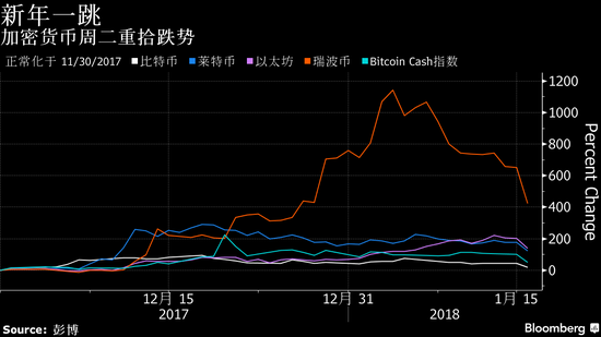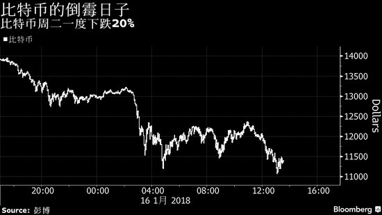 作者:来源:新浪财经凌晨彭博消息,随着比特币价格一度下跌20%,加密货币的1月下跌行情周二再添动力,因为监管打压可能扩大。