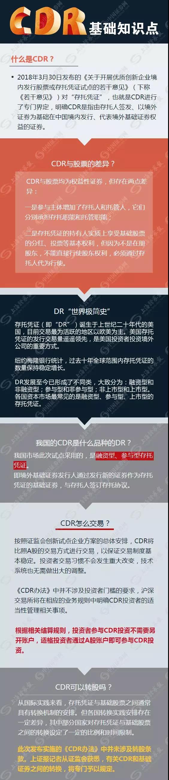 证监会6日晚间正式发布实施《存托凭证发行与交易管理办法(试行)》(下称《CDR办法》),符合条件的红筹企业今天起就可以向证监会递交发行CDR的申报材料了。在风险因素方面,增加了保荐人对境内外法律制度差异、公司治理特殊安排、基础股票变动等因素导致的风险的尽职调查要求;