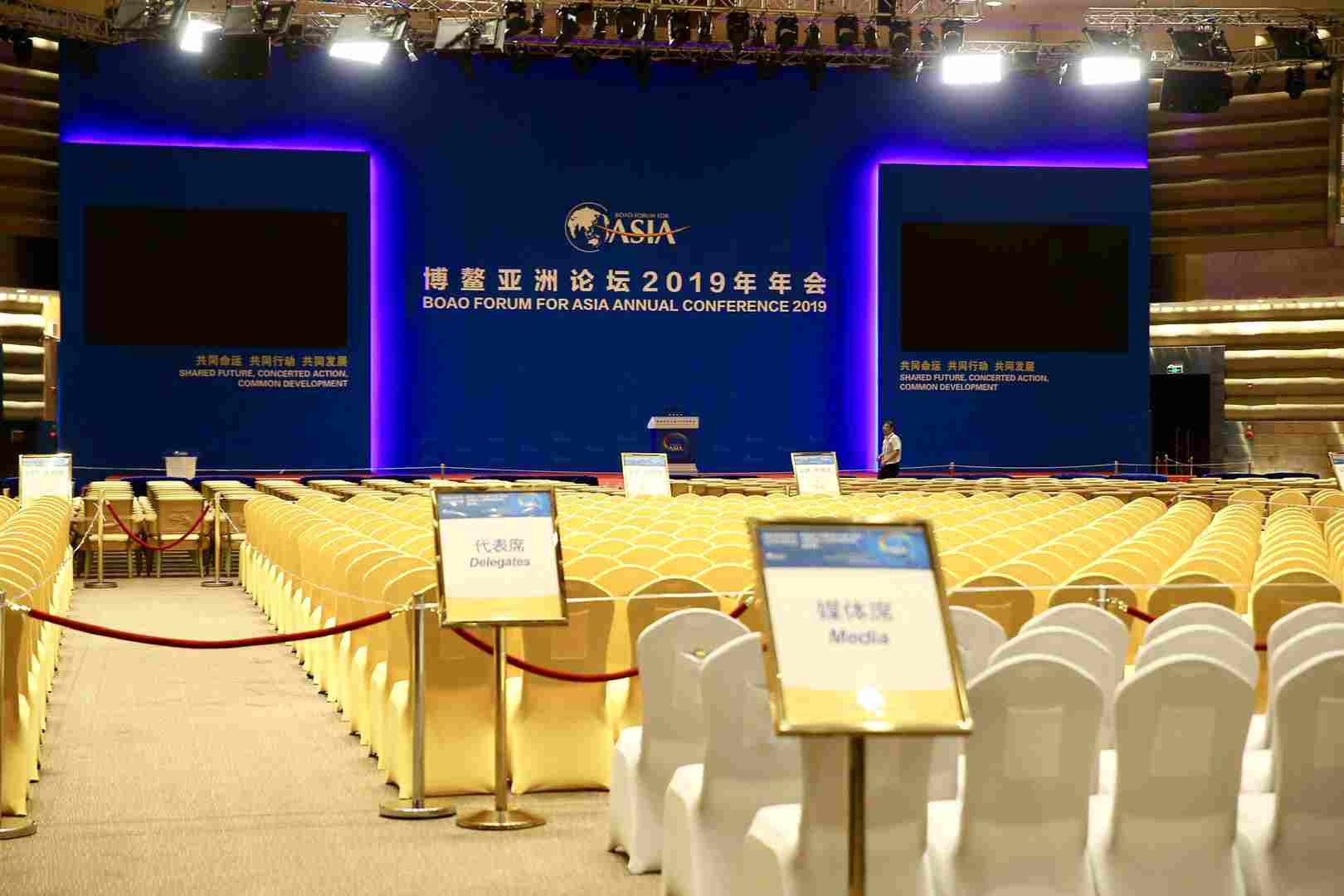 博鳌亚洲论坛2019年年会主会场布置完毕,静待开幕式举办。(摄影/本报记者 车亮)