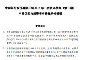 银行“补血”忙 中国银行再发400亿元二级资本债券