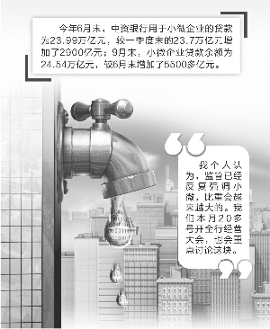 报表显示,今年6月末,中资银行用于小微企业的贷款为23.99万亿元,较一季度末的23.7万亿元增加了2900亿元;9月末,小微企业贷款余额为24.54万亿元,较6月末增加了5500多亿元。
