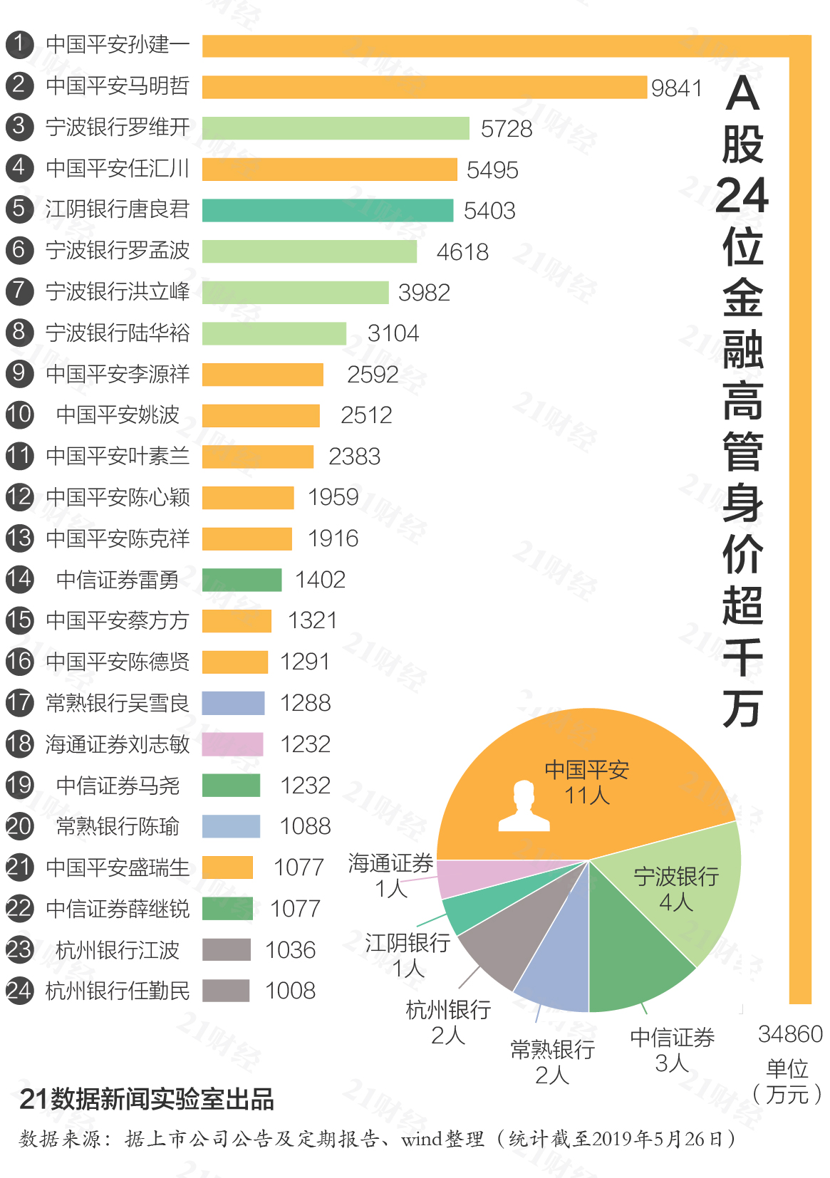 24位金融高管财富超千万,其中: