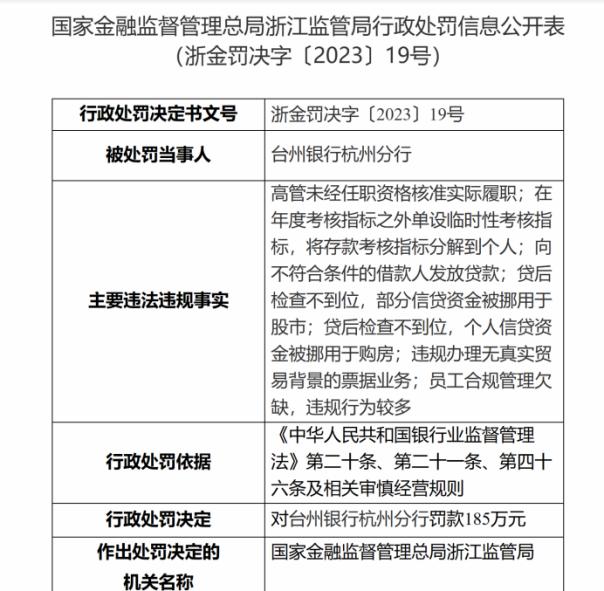 近日,监管部门披露的一张罚单在行业内引起关注。国家金融监督管理总局浙江监管局对台州银行杭州分行作出罚款185万元的处罚决定,其中一项违法违规事实便是“在年度考核指标之外单设临时性考核指标,将存款考核指标分解到个人”。