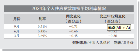 中国人民银行发布的2024年三季度货币政策执行报告显示,贷款加权平均利率持续处于历史低位。今年9月,新发放个人住房贷款加权平均利率为3.31%,同比下降0.71个百分点。