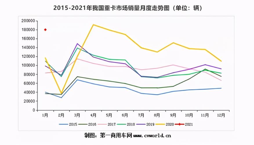 根据第一商用车网报道显示,2021年1月中国重卡市场预计销售各类车型18.9万辆(开票数口径),同比大幅增长62%,连续10个月刷新单月历史纪录。潍柴动力的两大重要客户陕重汽和中国重汽合计销售5.05万台,占总销量的27%。