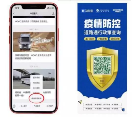 通行证问题得到了解决,卡车司机又该如何及时知道所要前往地区的疫情情况以及相应管控措施?为此,中国重汽联合中国物流与采购联合会、货车宝,推出了全国货车疫情防控政策查询系统,全国各地的最新疫情政策及道路管控情况都可在系统中进行查询。在中国重汽、中国重汽销售部、中国重汽汕德卡三大官方微信平台均可找到查询窗口。