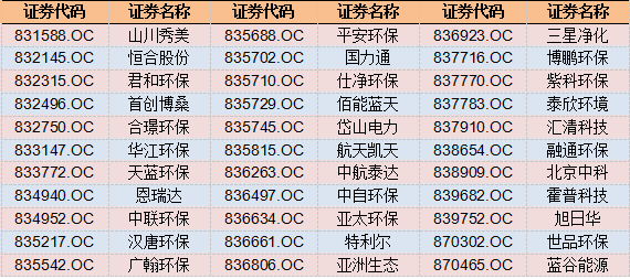 新三板33家大气污染治理企业名单(依照证券代码排名)
