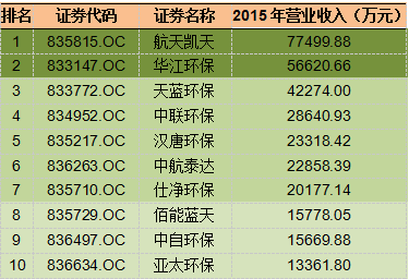 新三板大气污染治理5家创新层企业名单(依照证券代码排名)