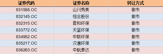 新三板大气污染治理7家做市转让企业名单(依照证券代码排名)