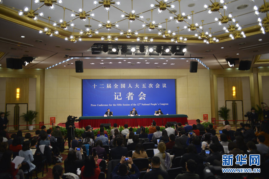 3月9日,十二届全国人大五次会议新闻中心举行记者会,邀请环保部部长陈吉宁就“加强生态环境保护”的相关问题回答中外记者的提问。图为记者会现场。新华网/中国政府网 孙韬 摄