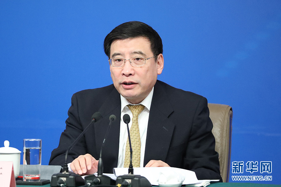 3月11日,十二届全国人大五次会议新闻中心举行记者会,邀请工业和信息化部部长苗圩、副部长辛国斌和总工程师、新闻发言人张峰就“推进实施‘中国制造2025’”的相关问题回答中外记者的提问。图为工业和信息化部部长苗圩回答记者提问。新华网/中国政府网 傅义洲 摄