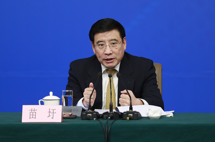 3月11日,十二届全国人大五次会议新闻中心举行记者会,邀请工业和信息化部部长苗圩、副部长辛国斌和总工程师、新闻发言人张峰就“推进实施‘中国制造2025’”的相关问题回答中外记者的提问。