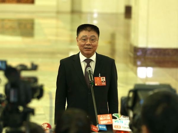 住房和城乡建设部部长王蒙徽在“部长通道”接受记者采访 车亮 摄