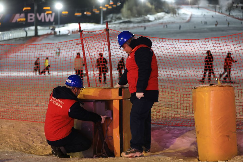 夜幕降临,当雪友们头顶星辰开启一场夜滑之旅时,电力工人们仍坚守在保电一线。他们正为“冰雪热”献上自己的心头暖。