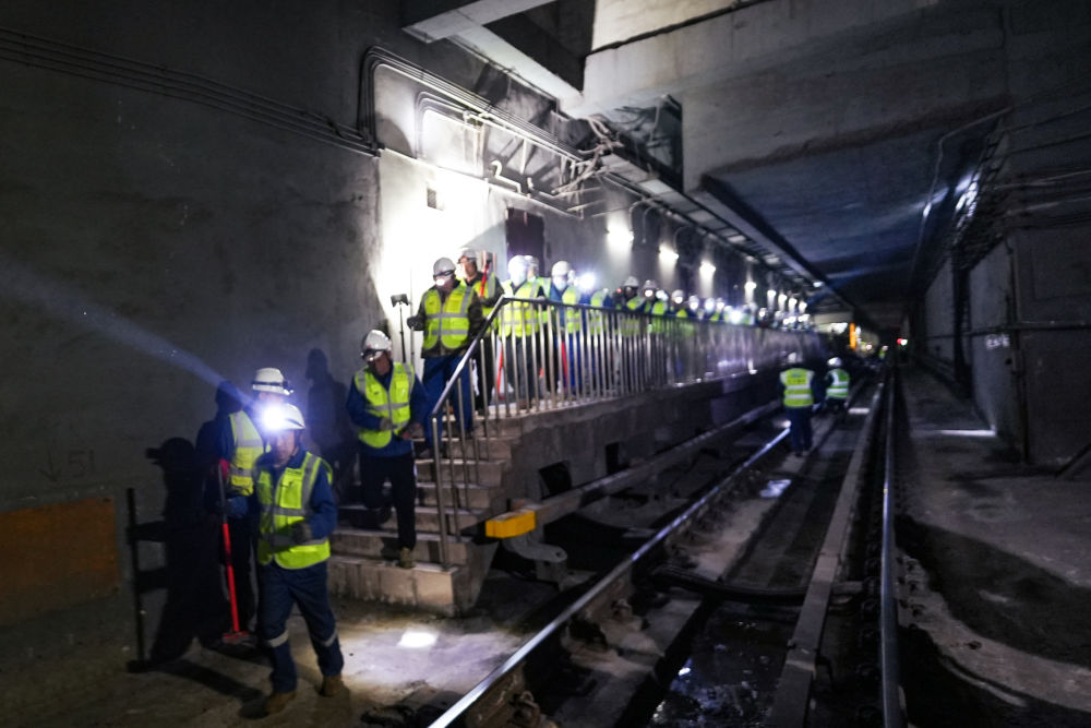 施工人员有序进入地铁隧道。新华社发(产启斗 摄)