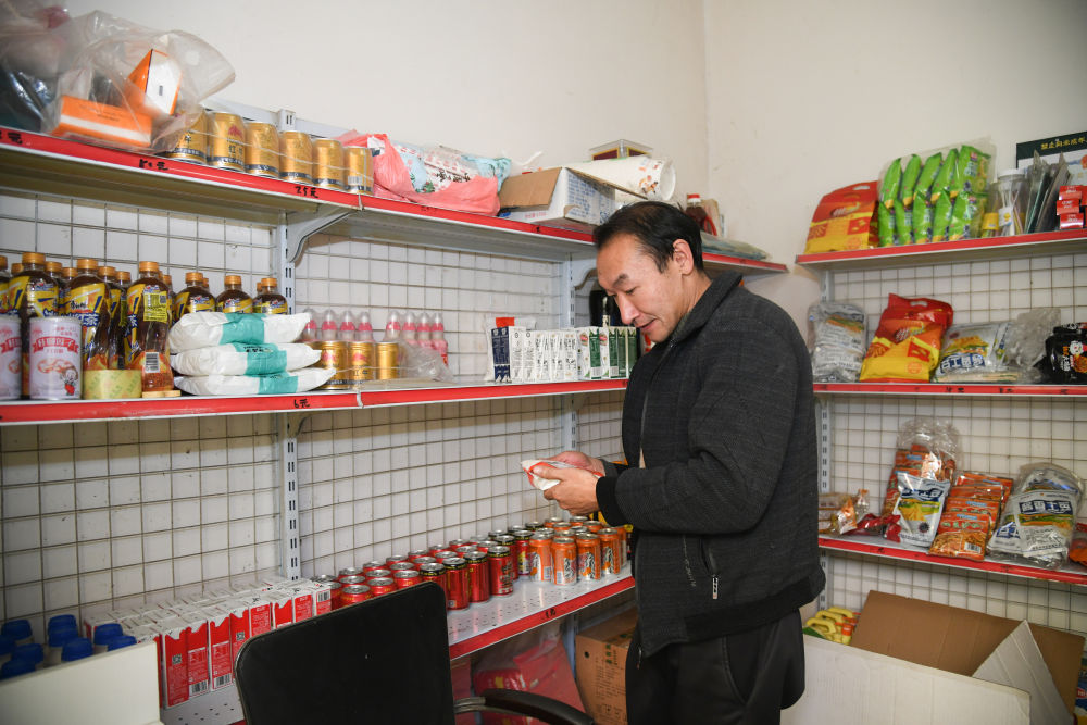 2024年12月29日,牟文贵在自家开设的商店中整理货品。新华社记者 张博文 摄
