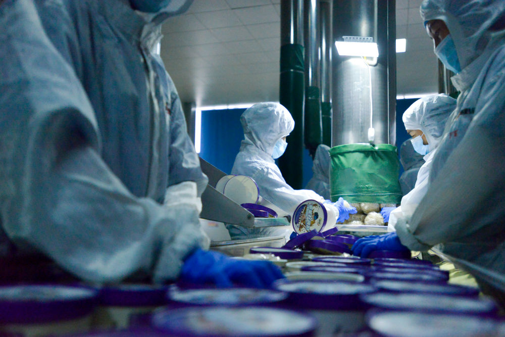 图为在河南通许县的酸辣粉生产车间,工人们正在将粉丝放入纸盒中。(通许县委宣传部供图)