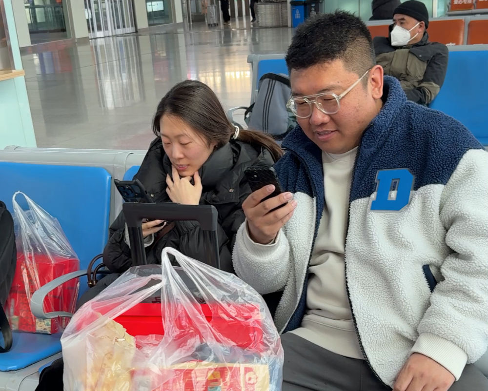 来自东北的王先生和妻子正在等待检票,准备回家。这个春节假期,他们选择了外出旅行,大年初一来到了天津,感受这里的历史文化和风土人情。