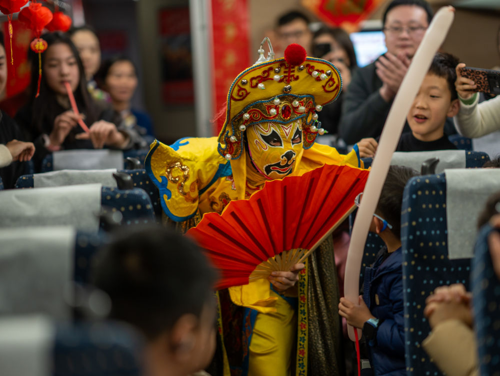 1月29日,“高铁游九寨 蛇年启新篇”主题旅游列车带领游客冬游九寨。(孟宽 摄)