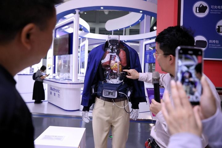 2025年9月24日,在海南博鳌“永不落幕”国际创新药械展,工作人员为参观者介绍植入式左心室辅助系统。新华社记者 郑悦 摄