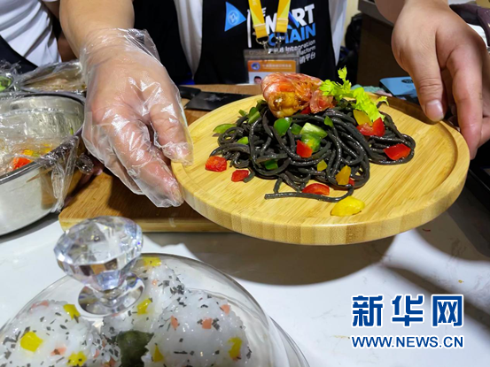 刚刚制作完成的墨鱼面。 新华网 佘灵 摄