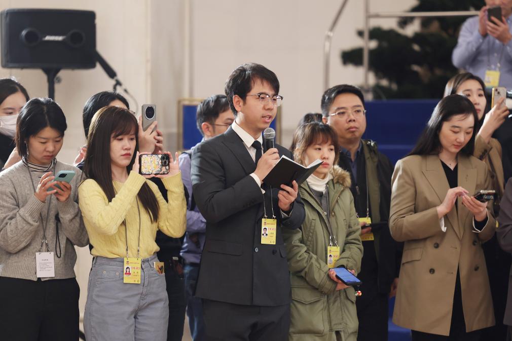 首页 全国政协十四届四次会议首场“委员通道”集体采访活动举行 新华社 2026-03-04 14:58 3月4日,全国政协十四届四次会议首场“委员通道”集体采访活动在北京人民大会堂举行。这是记者在提问。 新华社记者 卢烨 摄
