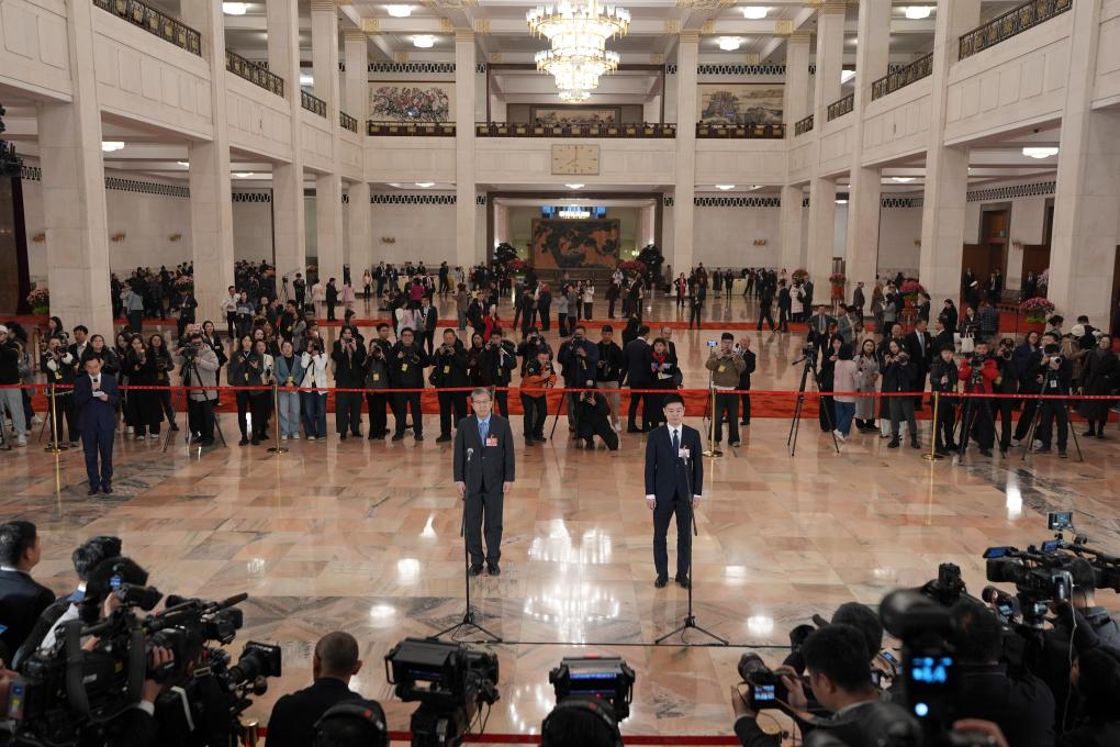 首页 十四届全国人大四次会议首场“代表通道”集中采访活动 新华社 2026-03-05 08:44 3月5日,第十四届全国人民代表大会第四次会议首场“代表通道”集中采访活动在北京人民大会堂举行。 新华社记者 王曦 摄