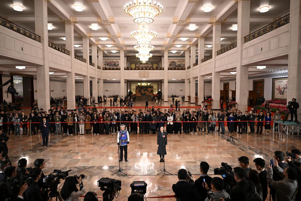2026年3月12日14:00,在人民大会堂中央大厅北侧举行十四届全国人大四次会议第三场“代表通道”集中采访活动,邀请部分全国人大代表接受采访。