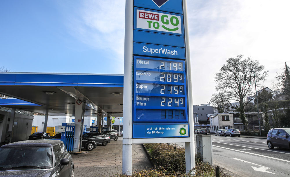 这是3月18日在德国法兰克福拍摄的一处加油站显示的油品价格。新华社发(阿曼多·巴巴尼摄)