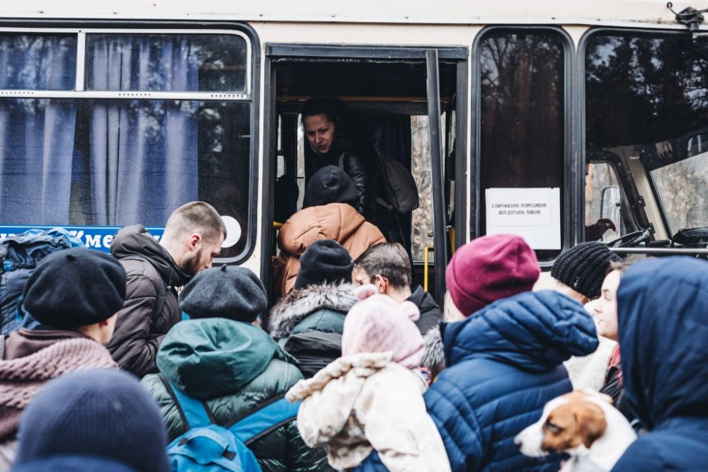 3月5日,民众经乌克兰基辅西部城镇伊尔平撤离。新华社发(迭戈·埃雷拉摄)