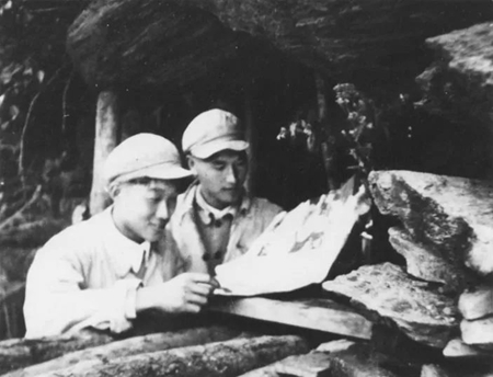 那时,工兵在洞外为总分社盖起了两个掩蔽部,洞对面一个由机要室专用,洞口一个是编辑办公的地方,“掩蔽部用一块块厚大的石块垒起作墙,门窗贴上白纸透光,大家白天晚上都在那里工作。”