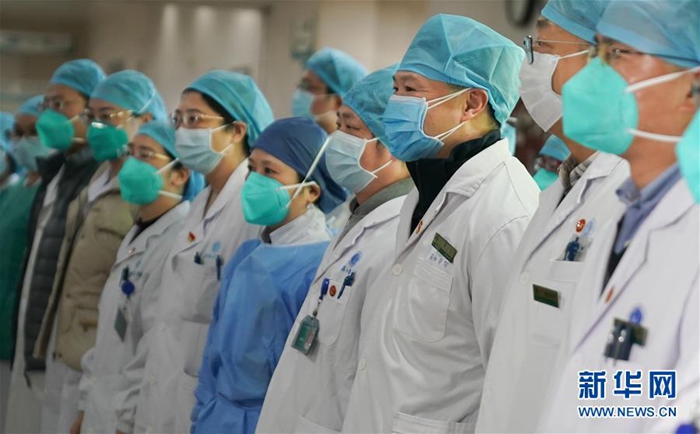 1月22日,华中科技大学同济医学院附属协和医院内科30余名医护人员组成抗击新型冠状病毒感染的肺炎突击队,投入到协和医院对口支持的发热定点医院——武汉红十字会医院的工作中去。 新华社记者 程敏 摄