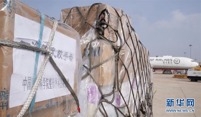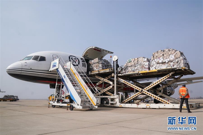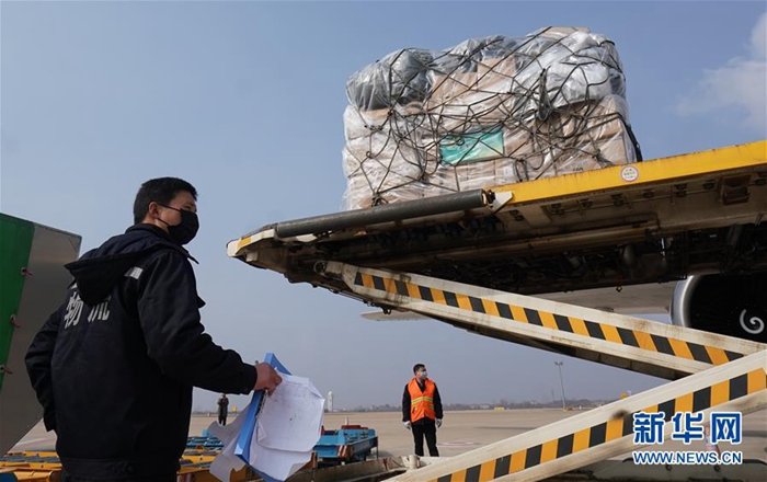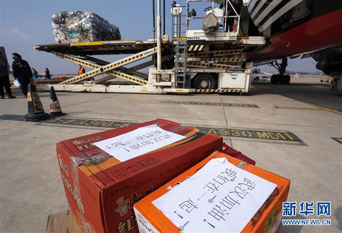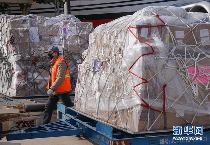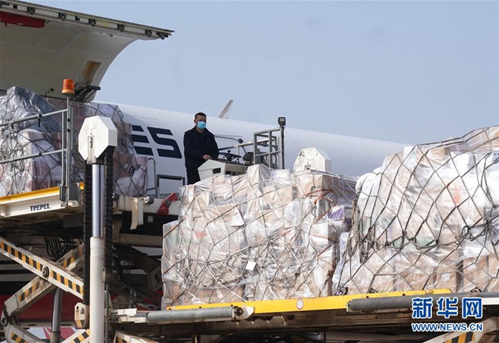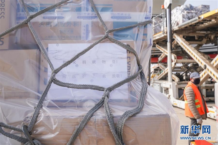 1月28日,一批援汉物资运抵武汉天河国际机场。 当日,武汉天河国际机场共有3架全货机满载医疗防疫物资抵港,包含医用口罩、医用帽子、乳胶手套、防护服、消毒液等各类防护用品及医疗药品,共计60余吨。 1月24日至28日,武汉天河国际机场已保障来自北京、上海、广州、西安、成都、重庆、济南、天津、沈阳、长春、太原和马尼拉、金边的各类医护支援航班28架次,运送医疗及相关人员3189人、医疗防护物资1300余吨抵汉。 新华社记者 程敏 摄